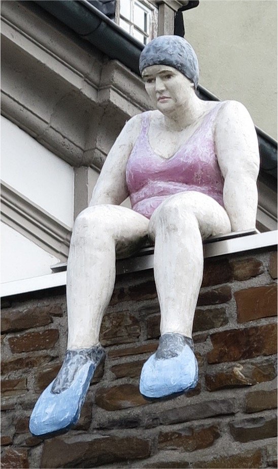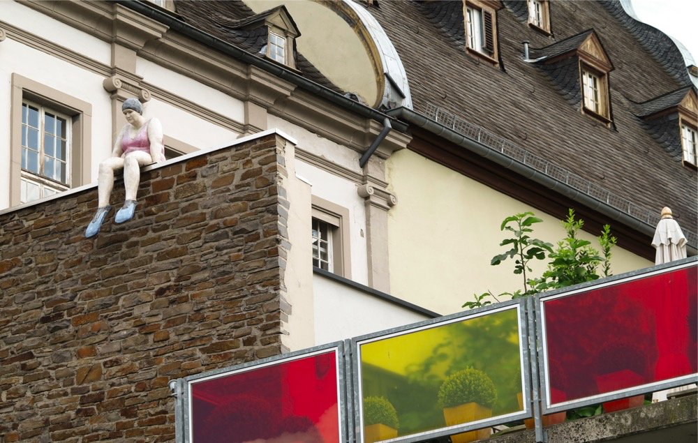In Koblenz am Peter-Altmeier-Ufer, ganz in der Nähe vom „Deutsches Eck“ erblickten wir auf der Wand sitzend diese lustige Gestalt.