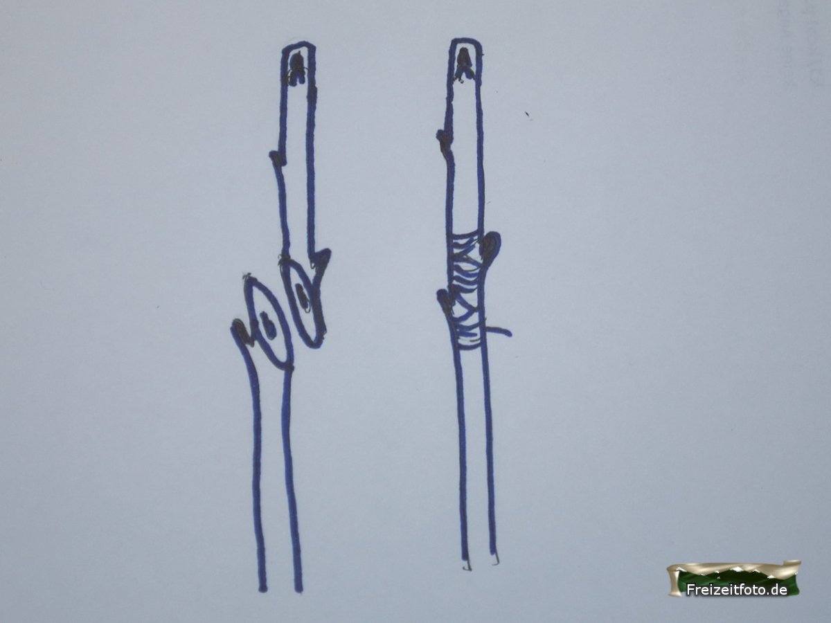 Von Januar bis Ende Februar, bei starkem Frost sogar bis in den März hinein, können Veredlungsreiser geschnitten werden. Die einjährigen Triebe sollten 15 – 20 cm lang sein und mindestens Bleistiftdick (6 – 8 mm ø) sein. Es eignen sich keine Triebspitzen. Der obere Schnitt erfolgt ca. 1 cm über einer Knospe. Es müssen 3 – 4 gut entwickelte Augen vorhanden sein. Gut verpackt in eine Gefriertüte werden die Reiser geschützt bis zur Verarbeitung flach eingegraben.