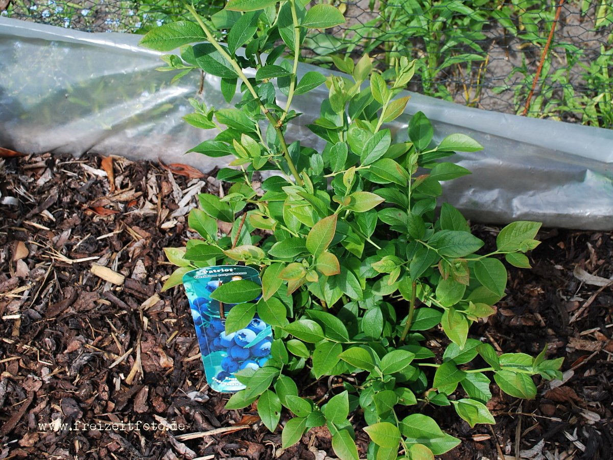 In dieses Erdgemisch werden die Pflanzen so eingesetzt, dass die Oberkante des Topf- oder Erdballens ein bis zwei Finger breit aus der Erde herhaussehen. Anschließend wird der gesamte Wurzelbereich mit Rindenmulch oder mit Gehäckseltem von Nadelgehölzen angehäuft. Gegossen wird nur mit Regenwasser und das reichlich, sie lieben keine Trockenheit. Weil die Kultur-Heidelbeere ein Flachwurzler ist (die Wurzeln wachsen gern nach oben an die Oberfläche) werden die Pflanzen immer wieder mit verrottetem Pflanzenmaterial wie Nadelstreu oder Rindenmulch abgedeckt.