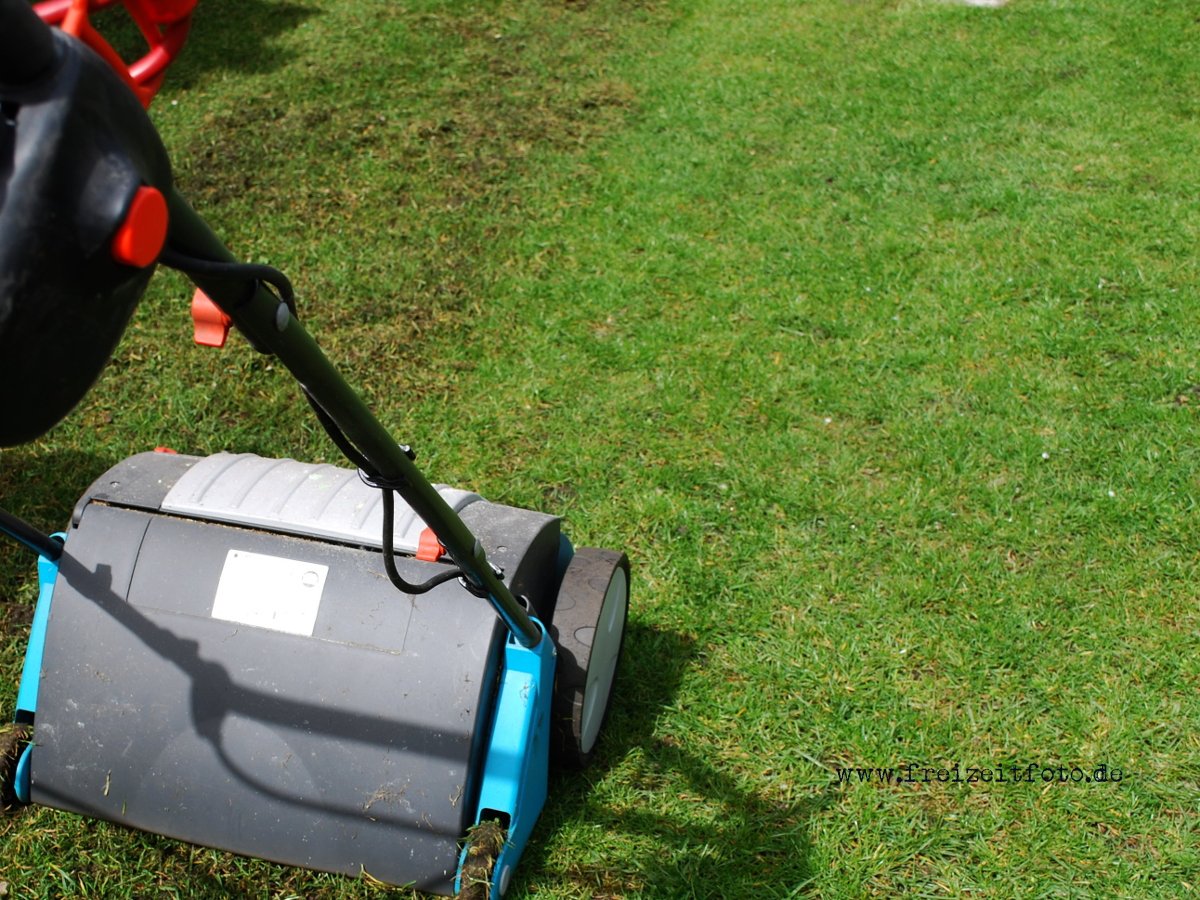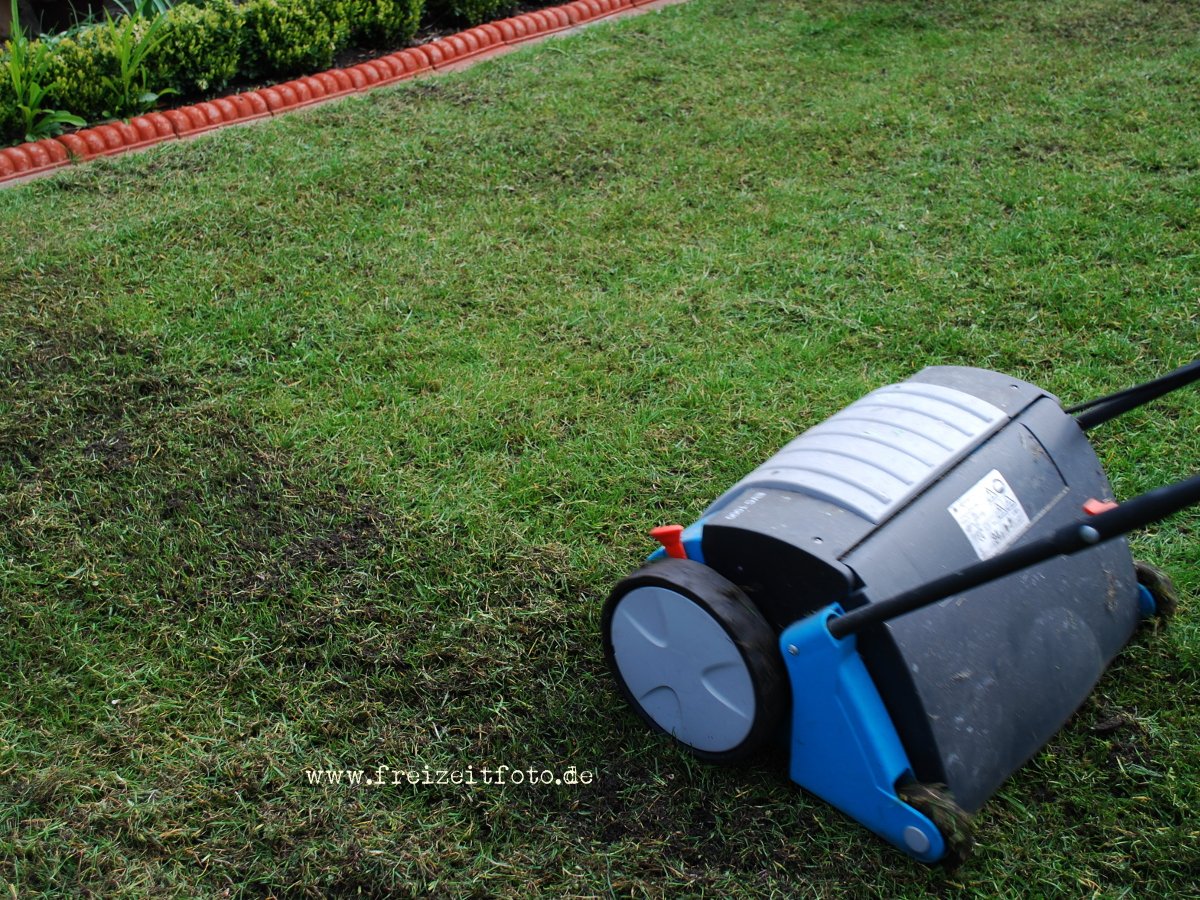 Danach die Rasenfläche gut abharken! Vertikutiert wird einmal im Frühjahr und einmal im Herbst.