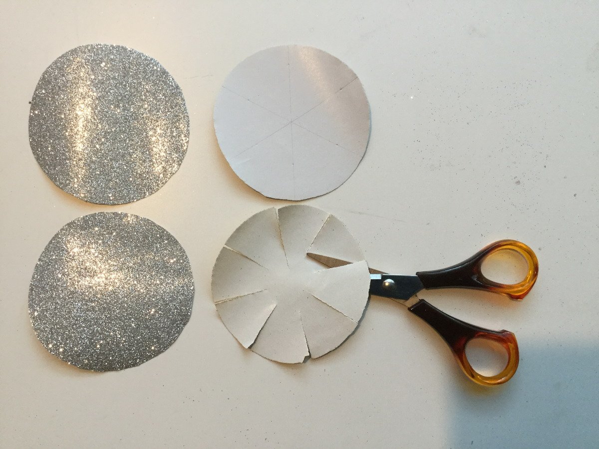 Mit Hilfe einer Schablone werden 8 Kreise aus der Folie geschnitten. Die Kreise werden geachtelt (kleinere Kreise gesechstelt) und 2/3 bis zur Mitte des Kreises eingeschnitten.